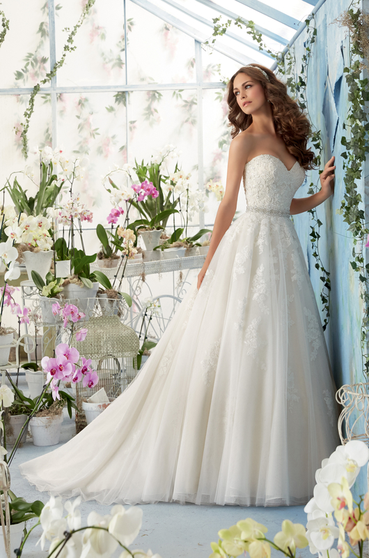 Alencon Lace Appliques With Crystal Beading On The Tulle Ball Gown